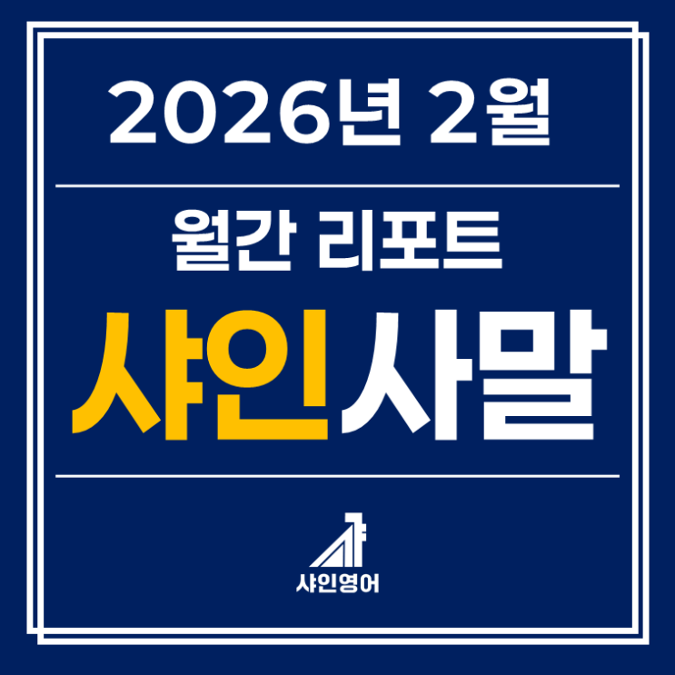 2026년 고1이 되는 재원생 여러분께 드리는 인사말 안녕하세요, 샤인영어 고등부 원장 이재봉입니다. 우선, 2026년 고등학교 입학을 딱 한 달 앞둔 시점에 미리 축하드립니다. 그리고 지난 1년간의 예비고1 과정 동안 고생 정말 많으셨고, 그 고생을 잘 견디고 고등 과정에서도 믿고 함께해 주어 정말 감사히 생각합니다. 지난 고생의 과정들이 절대 헛되지 않도록 그동안 여러분이 갈고닦은 역량이 충분히 발휘될 수 있는 고등 수업을 준비하고 진행하겠습니다. 본격적인 고등 수업에 앞서, 여러분께 꼭 드리고 싶은 말씀을 준비하였습니다. 그동안 수업을 진행하며 성과가 좋았던 학생들과 그렇지 못했던 학생들이 어떤 차이가 있었는지를 되새....... <img src="https://blogthumb.pstatic.net/MjAyNjAyMDFfMTEz/MDAxNzY5OTI3OTE1NzM2.kVscoHwEoTnTSrp303FquSSpkQqAQkF5zggsKYiCTJog.S6V_7aNz2Ujat2Cma1qlmJvnIZA3lK2AHteKfInUMwog.PNG/2026_2%BF%F9_%BB%FE%C0%CE%BB%E7%B8%BB.png?type=s3" />