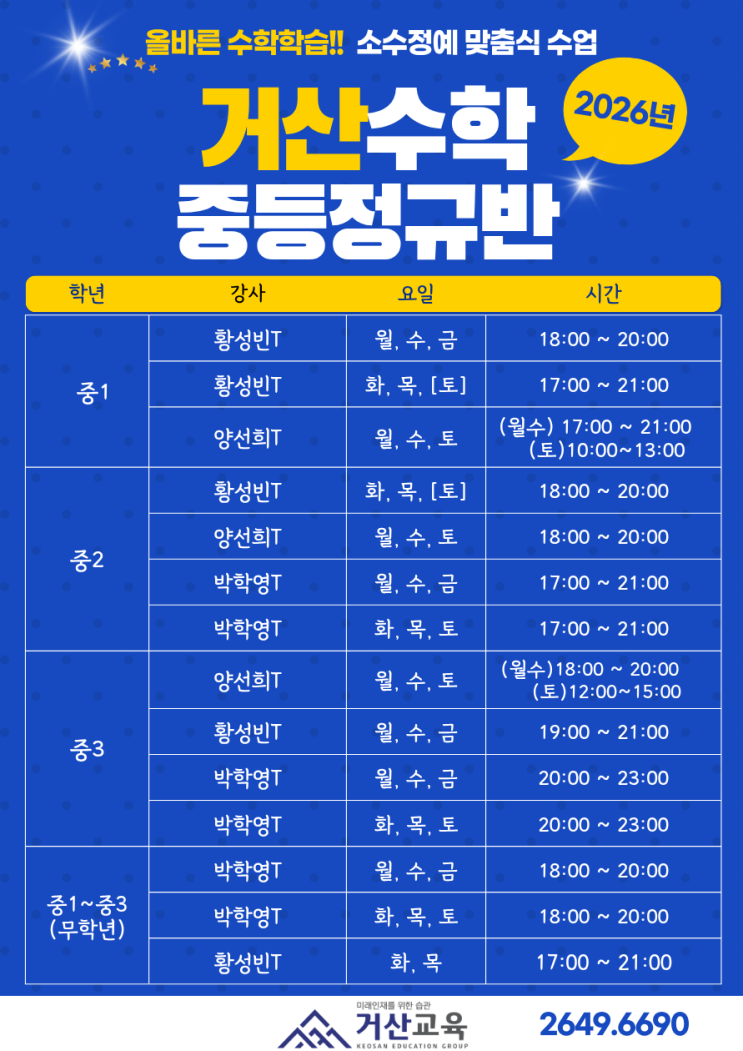 올바른 수학학습!! 소수정예반 수준별 개인 맞춤 수업 목표에 따른 맞춤 피드백을 통한 관리학습 내신 출제 경향으로 이끌어내는 전문 수학 강사 <img src="https://blogthumb.pstatic.net/MjAyNjAyMTRfMjM2/MDAxNzcxMDUyMjE0NjI5.xZWzf2qDxc4HfLyvkmUIfJ9UqzOOUWWsyisyAe900SEg.QJ0qjt_i1JjjpjvvndVKhwVYlqMurcfhYGrvXBwd7LUg.PNG/%C1%DF%B5%EE%BD%C3%B0%A3%C7%A5_%283%29.png?type=s3" />