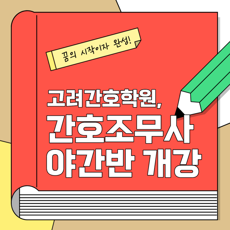 안녕하세요, 고려간호학원 입니다 :) 새로운 직업을 준비하거나 자격증 취득을 고민하고 계신 분들께 반가운 소식을 전해드려요~! 그동안 야간반 문의를 많이 주셨는데 2026년 1차 야간반 개강일정을 가지고 왔습니다 직장인, 경력단절 여성, 이직을 준비하는 분들에게 꾸준히 인기 있는 자격증이 바로 간호조무사 자격증인데요~! 낮 시간 수강이 어려운 분들을 위해, 바쁜 하루를 마치고도 꿈을 향해 한 걸음 나아가고 싶은 분들! 주목해주세요 ✨ ️ 2026년 4월 야간반 일정 ✔ 훈련기간 : 26.04.27 ~ 27.08.03 ✔ 이론 : 월~목 / 18:50 ~ 21:50 (3시간) ✔ 실습 : 토~일 / 08:50 ~ 17:10 (8시간) 공휴일 주말은 실습 휴강 자격....... <img src="https://blogthumb.pstatic.net/MjAyNjAzMTJfNDQg/MDAxNzczMjc3NTIwNjIw.VDxwxr49OrgAuL9BeH5ktUCYSiuH8dy5gpNH_vlOnBwg.AeNATPUY-pNyl9OahfeRTVNXlu9co2yJvuEMC7lK4ssg.PNG/1.png?type=s3" />