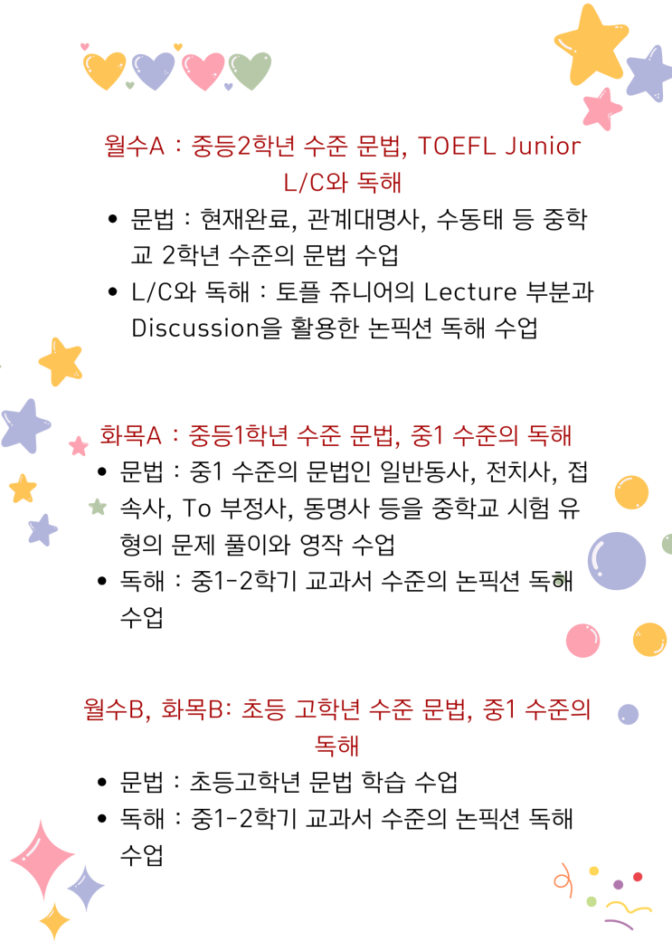 중등부 3월 입학테스트 범위 안내