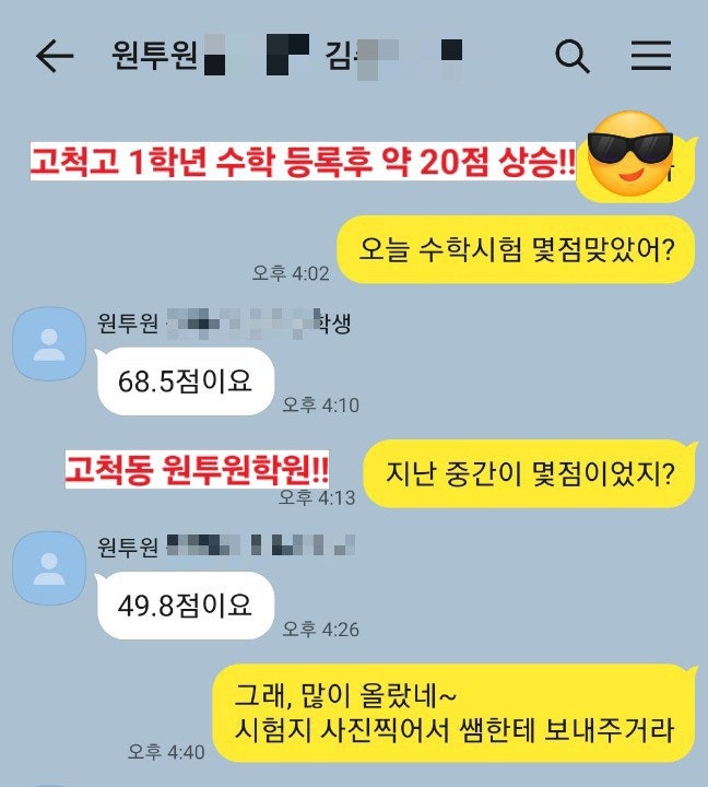 고척고학원 개웅중, 개봉중,경인중 졸업생들의 선택 !! 고척고하면 왜 원투원학원 일까?