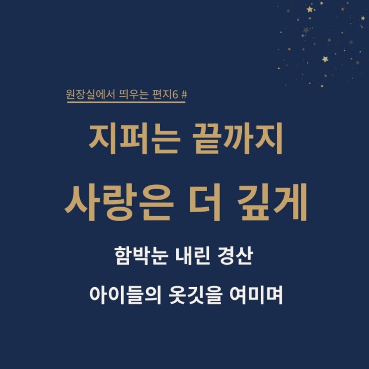 어제 경산에는 정말 오랜만에 함박눈이 펑펑 내렸습니다. 펑펑이라는 표현이 어울릴만큼 내리는 눈에 잠시 설레기도 했지만, 우리 아이들 하원길이 춥지는 않을까, 미끄럽지는 않을까 걱정되기도 했습니다. 수업 마치고 나서는 아이들 보니 바깥에 눈이 계속 내리고 있는데 옷매무새 제대로 안 챙기고 나서는 친구들 많더라고요. 못 보면 못 봤지 보고서는 놓치지 않찮아요 제가 ^^ 한 명 한 명 지퍼를 끝까지 올리고, 똑단추도 채워주고, 모자는 푹 눌러 씌워서 보냈습니다. 이제는 이 친구들도 압니다. 원장 선생님한테 지퍼를 맡겨야 한다는 것을요^^ 우리 아이들 공부만큼이나 건강도 소중히 챙기며 이 겨울을 잘 보내주었으면....... <img src="https://blogthumb.pstatic.net/MjAyNjAyMjVfNzAg/MDAxNzcxOTkyNTMyMjAx.Oy6Kxjt-2f4kJC0GfO2cFzdavUSXsFJVPY2-S8hMxrUg.IOYL8J9nBOJO4OGRqaajR6j4nusPX9CJyGvVnzNKA9cg.JPEG/900%A3%DF1771992523206.jpg?type=s3" />