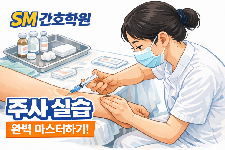 안녀하세요!! 오늘은 두근두근 주사 실습시간이랍니다!! 실습의 꽃!!! 배우는 주사 실습은 단순히 “찌르는 연습”이 아니라, 약물 준비 → 정확한 용량 → 올바른 주사 방법까지 전 과정을 익히는 중요한 과정이랍니다!! 특히 ✔️ 앰플주사약 준비, ✔️ 피내주사 용액 희석, ✔️ 피하주사 실습 이 세 가지는 실습 평가와 국가고시에서 모두 자주 등장하는 핵심 내용이에요. 그럼 우리 수강생 분들의 긴장되는 주사 실습을 보러 가볼까요? * 앰플 주사약 준비 방법 * ✔️ 앰플 주사약이란? 앰플 주사약은 유리로 만들어진 일회용 주사 약물 용기입니다. 개봉 후 보관이 불가능하기 때문에, 개봉 즉시 사용해야 하는 특징이 있어요. 유리....... <img src="https://blogthumb.pstatic.net/MjAyNjAyMTBfNCAg/MDAxNzcwNzA3NTYxODM1.7Ny1M-Rts6-dYvI9S49WsePkHoTN8QWoUa0m_7_oAAcg.AYb-JCASru7Bo3Tg2IP8ruzYtENqbziXMA0i9G3_XyIg.PNG/ChatGPT_Image_2026%B3%E2_2%BF%F9_10%C0%CF_%BF%C0%C8%C4_04_12_34.png?type=s3" />