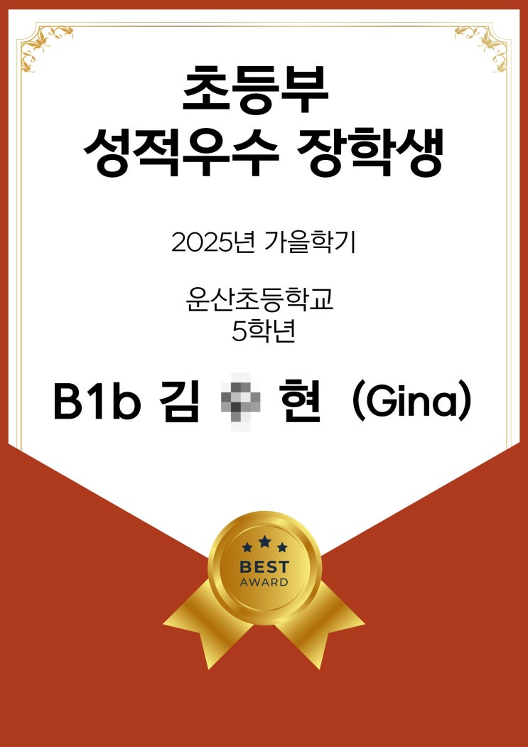 [ 용호동 초중등 전문 어학원 ] 2025년 가을학기 초등 성적우수 장학생 발표