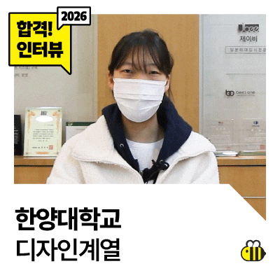 2026학년도 한양대 디자인계열 합격 한양대 수시 경쟁률 25.18 : 1 인터뷰 미리보기 ─ 재능우수자전형을 선택한 이유는 무엇인가요? 학교에서 생활기록부 관리를 열심히 해 온 점이 장점이 될 수 있다고 생각해, 실기와 1차 평가가 함께 있는 이 전형을 선택하게 되었습니다. 내신은 국어·영어·사회 기준 3점 초중반대였습니다. ─ 한양대 디자인계열을 선택한 이유를 알려 주세요. 1학년 때 디자인계열이라는 큰 학과 안에서 다양한 수업을 듣고, 2학년 때 세부 전공을 선택할 수 있다는 점이 마음에 들어 한양대 디자인계열을 선택하게 되었습니다. ─ 실기 시험을 안정적으로 치르기 위해 평소 어떤 준비를 해왔나요? 학원에서 자체 시험이나....... <img src="https://blogthumb.pstatic.net/MjAyNjAxMDdfNzEg/MDAxNzY3NzcxMTE4OTM3.1YTIMcuFIu4BhjnExWqYPh9up4gIO1OetfQJNAhtIncg.WQpxMRsUJXRVLgWaruiCP4-qz0v74p6u_JOzr56n7Akg.GIF/%C1%D6%BF%B9%B8%B0.gif?type=s3" />