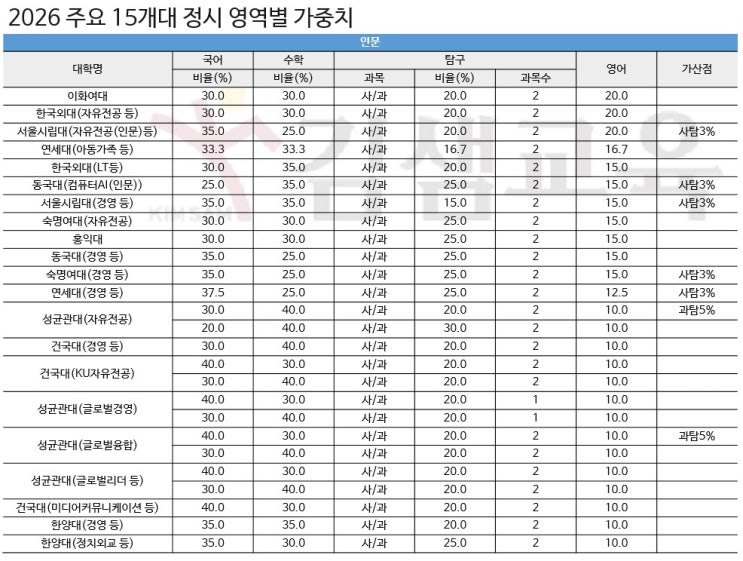 2026 정시 전략 핵심: 영역별 가중치가 당락을 가른다.