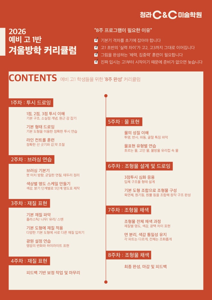 청라 검암 루원 청라중등미술 씨앤씨미술학원 중등디자인반 / 예비고1반 '8주 완성' 겨울 커리큘럼 안내