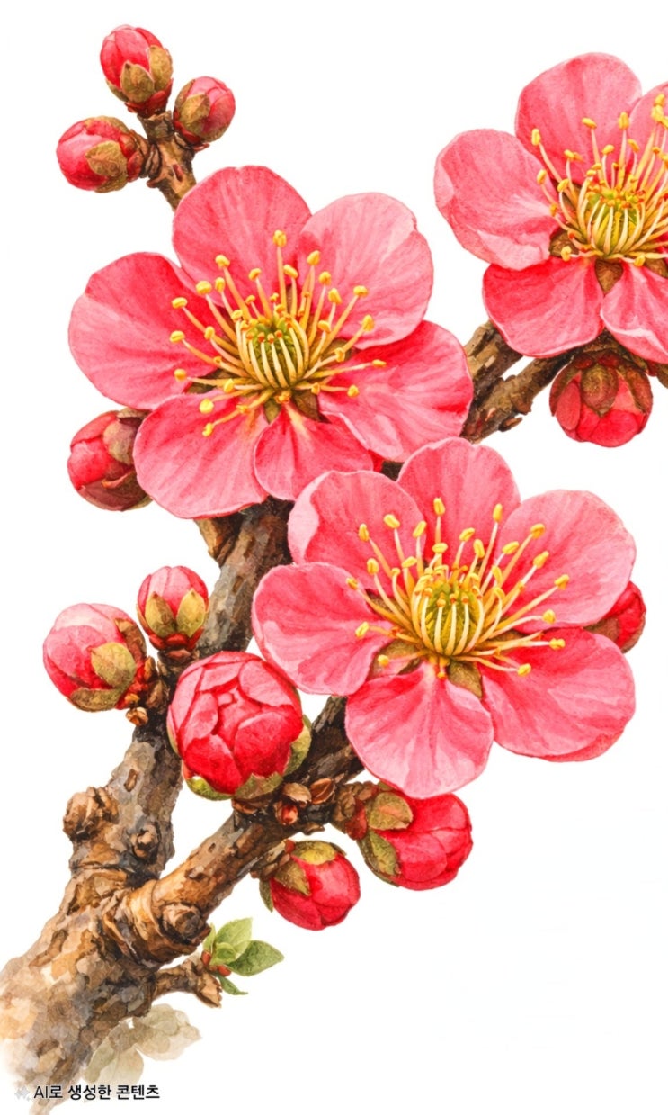 《한마루의 3월 18일 꽃 이야기 #홍매 紅梅》 #남궁일주(예명 #한마루)가 직접 찍은 꽃을 중심으로 AI가 세밀화로 그려낸 삽화가 함께합니다. ---------------♡--------------- 홍매 꽃말 * 열정 | 강렬하고 뜨거운 마음 * 희망 | 추위를 뚫고 피어나는 생명력 * 우아함 | 기품 있고 아름다운 자태 홍매는 백매보다 색감이 강렬하고, 붉은 꽃잎이 눈에 띄는 만큼 감성적이고 생동감 있는 분위기를 자아냅니다. 맑고 고결한 백매와 열정적이고 우아한 홍매가 봄의 다양한 얼굴을 보여주는 듯하지요~~ <img src="https://blogthumb.pstatic.net/MjAyNjAzMThfMTg5/MDAxNzczODQ0NTUwNjU2.ukAGiU3hTk0NT7GJT9PwJ0wbkvhzpQZhPhgsBUfK1JMg.8PDXjFiLeSa-l5omZFsBMJjOuZjYuD4K3x_Jhk4zT4Mg.JPEG/900%A3%DF%C4%AB%C4%AB%BF%C0%BD%BA%C5%E4%B8%AE%A3%DF2026%A3%DF03%A3%DF18_07%A3%DF27%A3%DF24.jpg?type=s3" />