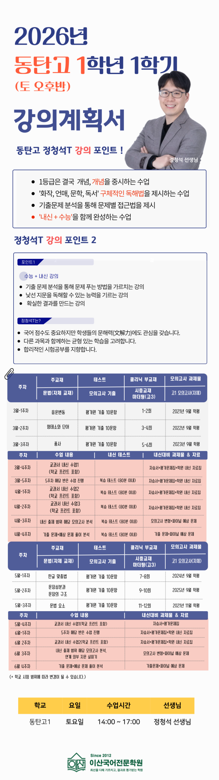 2026학년도 동탄고 1학년 1학기 강의계획서 - 정청석 선생님