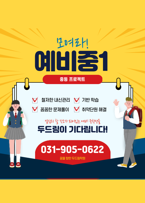 예비 중1-꿈을 향한 두드림 학원과 함께!