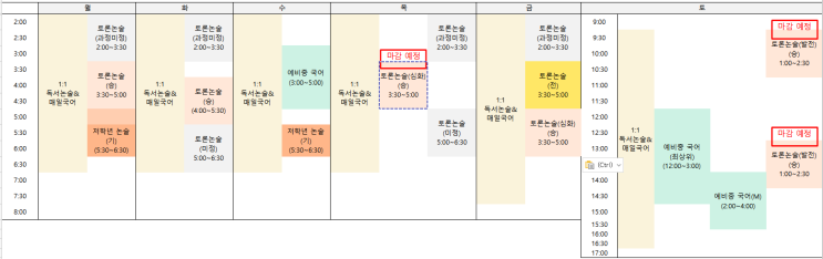 한 해의 마지막 달, 12월이 며칠 앞으로 다가왔어요. 새학년 공부 계획을 세우는 시기를 맞이해 주리논술에서 우리 아이, 문해력과 글쓰기 실력 점검을 도와드립니다. 12월 8일~12월 31알까지 무료 진단 테스트와 첨삭 그리고 상담을 진행합니다. 다음 일정을 참고 하셔서 전화나 문자로 예약해 주세요^^ ** 위의 일정이 안 되시는 경우 전화 문의 주시면 시간 안내해 드리겠습니다.