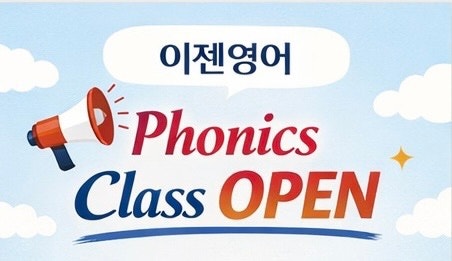 안녕하세요~ 올 한해동안 영어의 시작을 이젠영어와 함께할 파닉스 반을 개시 합니다~ 이미 몇개월 전부터 대기등록을 올리신 분들이 계셔서 먼저 연락드린후 T/O에 따라 추가 모집을 할 예정이랍니다 월, 수 1:20 Class <img src="https://blogthumb.pstatic.net/MjAyNjAyMTZfMTc4/MDAxNzcxMjMyODYxMTE5.UogSrB5tPQpSGoSNpDwdiSguotmGaFbwcUUG398G3C8g.-pLMntN0ckl354FDrsV1dshpcKC8I7k-YiOkGdIqnccg.JPEG/60E7E499%A3%AD58D7%A3%AD4C49%A3%AD8628%A3%AD92F793B8A59F.jpg?type=s3" />