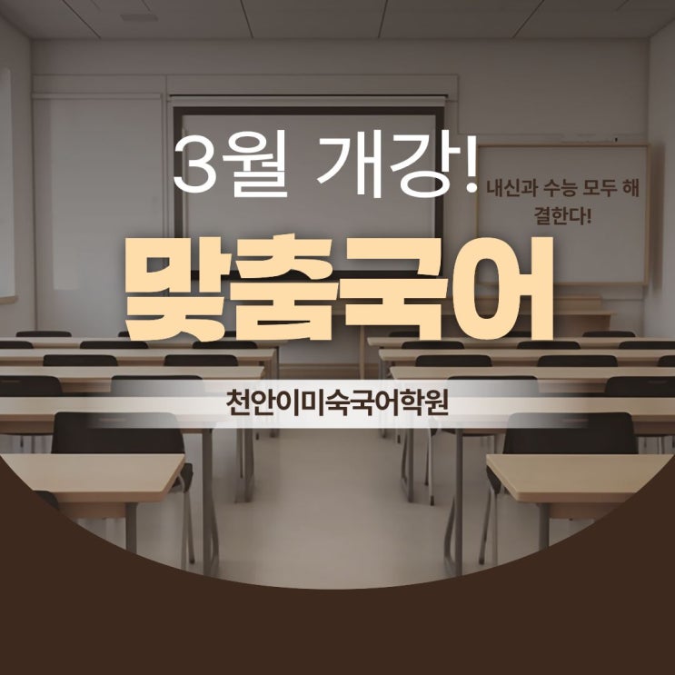 중고등 맞춤국어! 3월 개강을 곧 시작합니다. 국어 전문 강사진 체계적인 국어 학습 커리 큘럼 풍부한 자체 컨텐츠와 학습 자료 촘촘한 클리닉 관리 시스템 우리 학생들을 위한 맞춤국어 학습을 경험하신다면, 좀더 빨리 시작할 걸 하는 아쉬움이 드실 것입니다. 늦지 않았습니다. 이제 3월, 아주 중요한 학기의 시작이 곧 다가옵니다. 학년, 학교, 학생 개인에 맞는 가장 최적화된 수업과 학습 코칭으로 학생들의 학습 동기와 성적 향상, 그리고 습관 형성까지! 3월 함께 한다면, 저희 천안이미숙국어학원에서 학습의 근간이 제대로 형성됩니다. 현재 3월 시작, 수업 대기 접수중입니다. 자세한 수업 시간 및 학습 상담은 전화 문의해 주시면 친....... <img src="https://blogthumb.pstatic.net/MjAyNjAyMjFfMTI2/MDAxNzcxNjQ3NjAzODU3.-czZrpCROF-szQDDRLpWE3Xml36zfKUp3LNtNciJlREg.mKLi839DjN18NCUT5c-eA69udv2UJcG0fPTGW0c_2nEg.JPEG/1_%281%29.jpg?type=s3" />