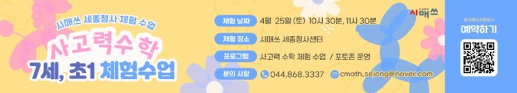 세종청사 시매쓰 초1, 7세 사고력 수학 체험 수업 OPEN