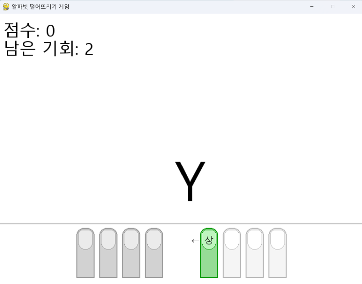 기본적 기능만 있는 키보드 자판 익히기용 게임입니다. 화려한 음향이나 효과없고요.. 오로지 기능중심^^;; 영어타자 실력을 늘리고 싶은 분들에게 유용할 것 같습니다. 디자인이나 사운드효과나 이런거 하나도 없습니다. 떨어지는 알파벳을 키보드로 누르면 점수올라가고 기회5번 잃으면 게임아웃입니다. <나름 쓸모있고 뿌듯한 기능들> -손톱에 키보드중 윗줄, 중간줄, 아랫줄 구분하여 상중하로 표시됩니다. -가운데 몰려있는 t, y, g, h, b를 누를때는 왼손이나 오른손 검지 손톱옆에 화살표가 나타납니다. (해당손가락을 누르되 가운데로 손가락땡겨서 누르란 소리죠^^) 다른 기능들이 많으면, 광고나 로그인 등...오히려 집중력을 떨....... <img src="https://blogthumb.pstatic.net/MjAyNTEyMTBfMTkz/MDAxNzY1MzU1ODkyMTM4.s14BpiXMBZbOgKNznBmYN8xeIyRXLwbm2qUIBL22ztwg.mRAsWE4Yi4cRYgnJDq8VedpUsq1aTTEbUt5MWMCfAlUg.PNG/image.png?type=s3" />