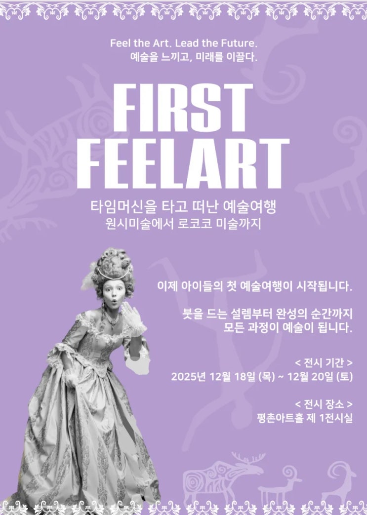타임머신을 타고 떠나는 예술여행 안양 평촌미술학원 평촌필아트·호계동미술학원 평촌센텀필아트는 평촌아트홀에서 〈타임머신을 타고 떠나는 예술여행〉 그림전시회를 열었습니다. 이번 전시는 아이들의 작품이 전시를 넘어 다시 빛이 되어 사회로 퍼져가는 나눔 전시입니다. 부모님과 아이들, 그리고 예술이 만나 따뜻한 에너지를 함께 나누는 시간을 담았습니다. 아이들의 상상으로 다시 태어난 미술의 시간들 만약 타임머신을 탈 수 있다면, 아이들은 과거의 예술 속에서 무엇을 보고, 무엇을 느끼게 될까요? 이번 전시는 아이들이 ‘미술사를 배우는 관람자’가 아니라, 각 시대를 직접 살아보는 창조자’가 되어 떠난 시간 여행의 기록입니....... <img src="https://blogthumb.pstatic.net/MjAyNTEyMTlfMjU0/MDAxNzY2MDc3MTE1OTQw.rmn572cbEQM7LnOB7UheYLN_BQ3wFCIXAh-TKMZhoy4g.yhuPvK1NXaX_kia8HLHcGsvrL7-tG9-nLBGlCrASm_og.JPEG/900%A3%DF1765158917840.jpg?type=s3" />