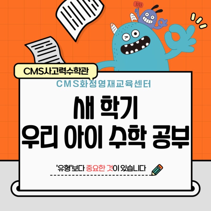 어느덧 새학기가 바로 코앞입니다. 이맘때가 되면 부모님들의 마음도 함께 분주해집니다. “이번 학기엔 뭘 더 준비해야 하지?” “연산은 해왔는데, 이제 문제집을 더 풀리면 괜찮을까?” 수학 이야기가 나오면 가장 먼저 떠오르는 건 ‘유형’ 입니다. 유형을 많이 알면 왠지 안심이 되고, 문제집을 여러 권 풀면 실력이 쌓이는 것처럼 느껴지죠. 하지만 교실 안에서는 또 다른 장면이 펼쳐집니다. 유형을 아는데, 왜 문제를 못 풀까요? 수업을 하다 보면 자주 보게 됩니다. 비슷한 문제는 잘 풀던 아이가, 형태가 조금만 바뀌면 멈춰 서는 모습입니다. 아이들은 문제를 이해한 것이 아니라, ‘유형의 모양’을 기억한 경우가 많기 때문입니다....... <img src="https://blogthumb.pstatic.net/MjAyNjAyMjVfMjc0/MDAxNzcyMDE3MTcwMDQ3.o0NyP_NIbymH6VdyxBeZS6DwtFMr_fu5TaA1q2FluTkg.dS_UwOmULrwoZb1Emah8yT2ekvrfjVU5L5Nun6gSpFwg.JPEG/%BA%ED%B7%CE%B1%D7%BF%EB%BF%DC_%2813%29.jpg?type=s3" />