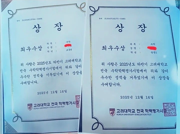결과로 증명하는 초·중·고 수학 수업, 지호학원 학원의 수업력을 가장 객관적으로 보여주는 지표는 시험 성적과 공식적인 평가 결과다. 지난해 지호학원에서는 초등·중등 학생들이 전국 단위 수학 경시대회(고려대학교 주관 전국 학력평가)에서 최우수상을 수상하는 성과를 거두었다. 단순히 한 명의 성과가 아니라, 여러 학년에서 반복적으로 나온 결과라는 점에서 지호학원의 수업 방식이 학생들에게 실제로 작동하고 있음을 보여준다. 수상 내역 요약 수학 경시대회 최우수상 수상 과목 : 수학 대상 : 초등 / 중등 학생 주관 : 고려대학교 전국 학력평가 시기 : 2025년도 하반기 모든 상장은 실제 학생이 대회....... <img src="https://blogthumb.pstatic.net/MjAyNjAxMjZfMTY1/MDAxNzY5NDM0NzU5MDM2.qoIdThM6MDlQhpVIshN8ZefP7MKZVsH-SWKhVqkenQsg.xcoingUFZy7rHWYcjxWu7zF_Pp35YX7iXCfcOnFG1JEg.JPEG/Screenshot%A3%DF20260126%A3%DF223400%A3%DFKarrot.jpg?type=s3" />