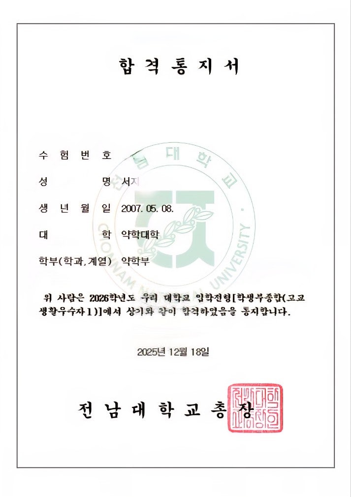 [약학대학 합격] 교하고 서지O학생의 약대 합격을 축하합니다!! (3년의 결실)
