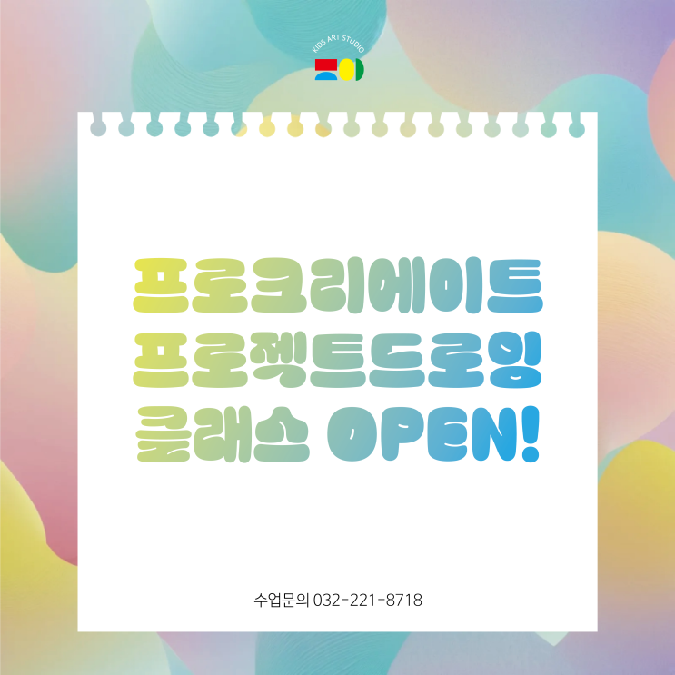 ❤️ 안녕하세요 모아미술입니다 다가올 새학기를 맞이하여 3월부터 새로운 클래스를 개설하게 되어 소식 올려드려요! 프로크리에이트 프로젝트 클래스 지금까지 방학특강으로만 진행해왔던 프로크리에이트 드로잉 클래스를 최근 아이들의 지속적인 관심과 트렌드를 반영하여 한시적으로 개설하고자 합니다 요즘은 종이 드로잉뿐 아니라 ✔ 디지털 환경에서의 표현 ✔ 만화·일러스트·포스터 등 다양한 시각 매체 ✔ 결과물을 완성하고 공유하는 경험 에 관심이 커지고 있어요! 이번 아이패드 드로잉반은 이런 관심사를 반영한 클래스입니다 프프클 수업 안내 - 기간 : 2026년 3월 5일 ~ 5월 21일 (3개월간 총 12회) - 시간 : 목요일 6:00 –....... <img src="https://blogthumb.pstatic.net/MjAyNjAyMDlfNDAg/MDAxNzcwNjIxMjU2Mzg3.gmbCWLaEh7IU3NqBZuxXe2uQYZmRMBKhhL-TSZNAJvIg.6O7uPK6hlLgbLoCEFBOCORUeWPMkFoFRUP415Os3CNgg.PNG/2%B9%AB%C1%A6-1.png?type=s3" />