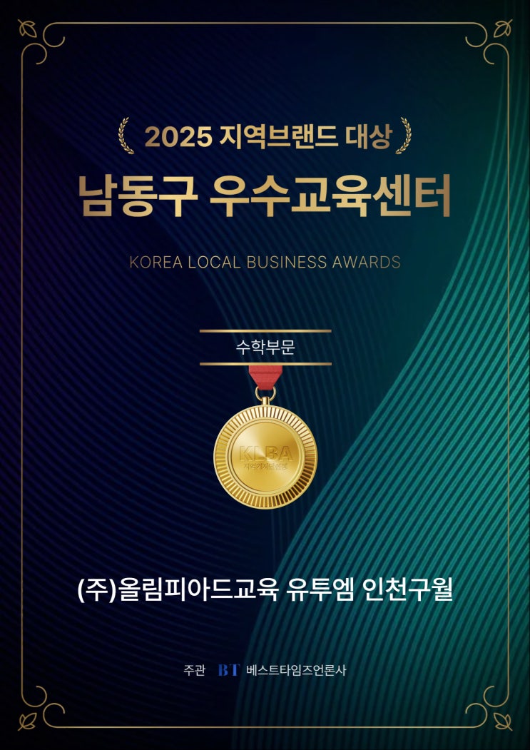유투엠 구월캠퍼스 ! * 2025 지역브랜드 대상 * 남동구 우수 교육센터로 선정되다! (주)올림피아드 교육 U2M 구월캠퍼스 교육문의) 719-4444 #구월동학원 #구월동수학학원 #구월동영어학원 #구월동과학학원 #남동구수학학원 #남동구과학학원 #남동구영어학원 #신명여고수학 #인제고수학 #숭덕여고수학 #인천고수학 #인천남고수학 #문일여고수학 #만수고수학 #신명여고과학 #인제고과학 #숭덕여고과학 #인천고과학 #인천남고과학 #문일여고과학 #만수고과학 #신명여고영어 #인제고영어 #숭덕여고영어 #인천고영어 #인천남고영어 #문일여고영어 #만수고영어 <img src="https://blogthumb.pstatic.net/MjAyNjAyMTFfMTQ1/MDAxNzcwNzk2NjA4NjAz.lKfvBPWsiB3Y9YbUokPEw_W1vgK1YUdah8JclBR4xEEg.uslYsz8u2ApzP-STIMaiKCuc7M3_s4ZeIpxP5iyYjMsg.JPEG/2025_%B3%B2%B5%BF%B1%B8_%BF%EC%BC%F6_%BC%F6%C7%D0%C7%D0%BF%F8.jpg?type=s3" />