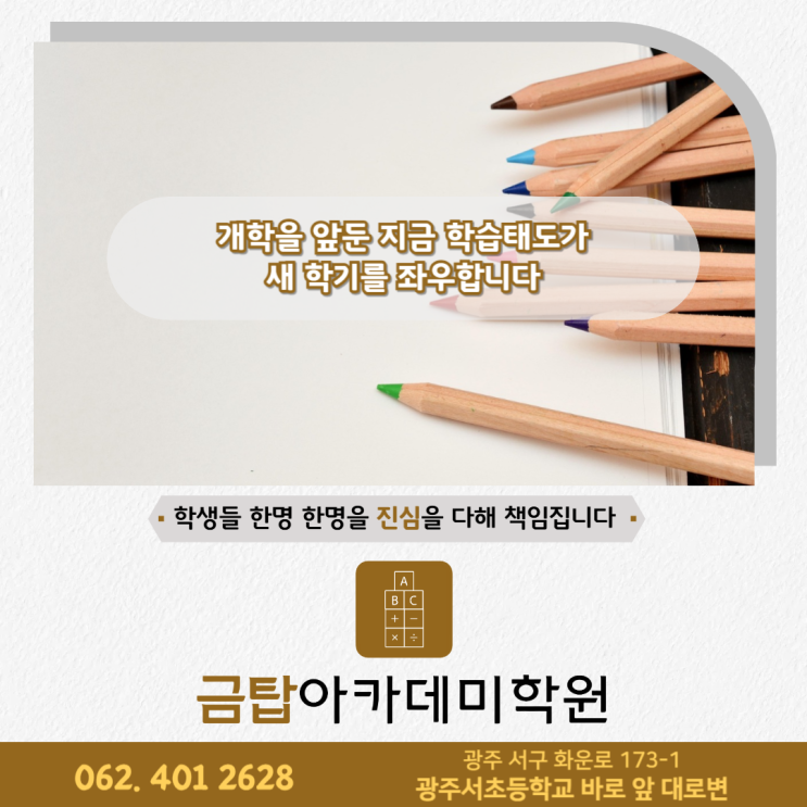 광주서초등학교 금탑아카데미 개학을 앞둔 지금 학습태도가 새 학기를 좌우합니다