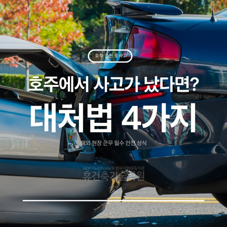 안녕하세요. 휴건축기술학원입니다. 호주 현장에서 근무를 시작하면 차량 운전은 선택이 아니라 필수가 됩니다. 출·퇴근은 물론 현장 이동과 자재 운반까지, 운전은 일상의 일부가 됩니다. 하지만 낯선 도로 환경과 좌측 통행, 익숙하지 않은 교통 체계 속에서는 예상치 못한 사고가 발생할 가능성도 있습니다. 해외에서의 사고는 단순한 접촉사고로 끝나지 않습니다. 언어 문제와 보험, 경찰 절차의 차이로 인해 대응이 늦어지면 근무와 일정, 비용 부담까지 이어질 수 있습니다. 특히 연수생에게 차량은 곧 생계와 연결됩니다. 그래서 막연한 정보가 아닌, 실제 상황에서 바로 적용할 수 있는 사고 대처 매뉴얼을 정리했습니다. 호주에서 교통....... <img src="https://blogthumb.pstatic.net/MjAyNjAyMjdfNzMg/MDAxNzcyMTY1NzQ1Njc1.vtzRAzCrWquiNIQdH97NLjaasMZP_dfIF-JvLXXmqXYg.Pk2ATMp0um5D1l60bYxoqtZWkuOHby2LF2UVK5zrq4sg.PNG/%BA%CE%C1%A6%B8%F1_%C3%DF%B0%A1.png?type=s3" />