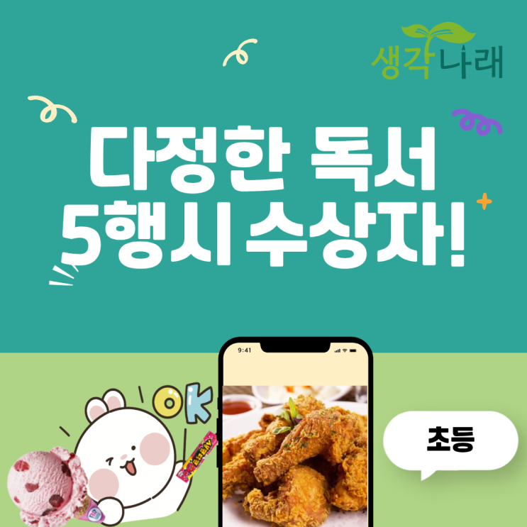 <생각나래 초등> 다정한 독서 5행시 수상자 발표합니다.