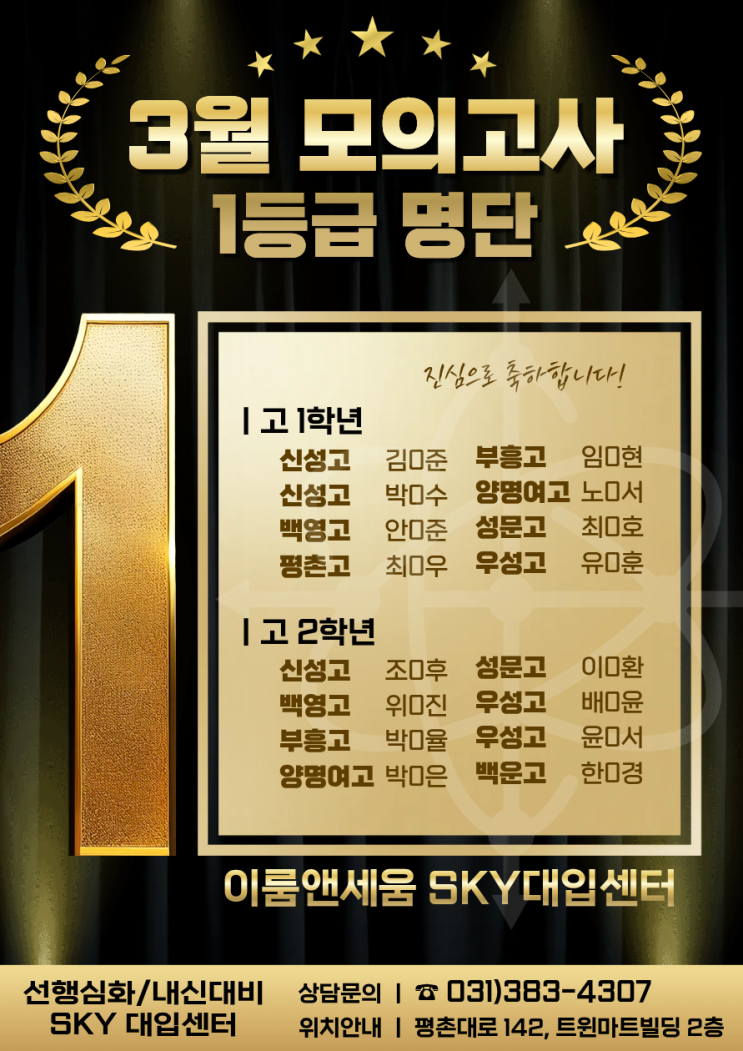 [SKY대입센터] 3월 모의고사 ★1등급★ 학생 명단