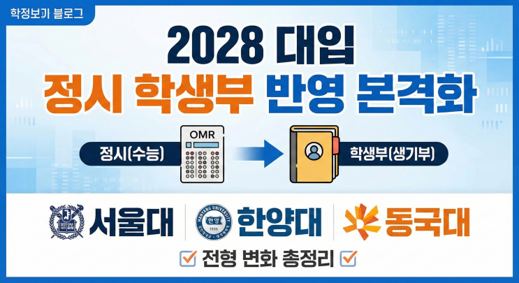 2028 대입 정시 학생부 반영 본격화 서울대 한양대 동국대 전형 변화 총정리