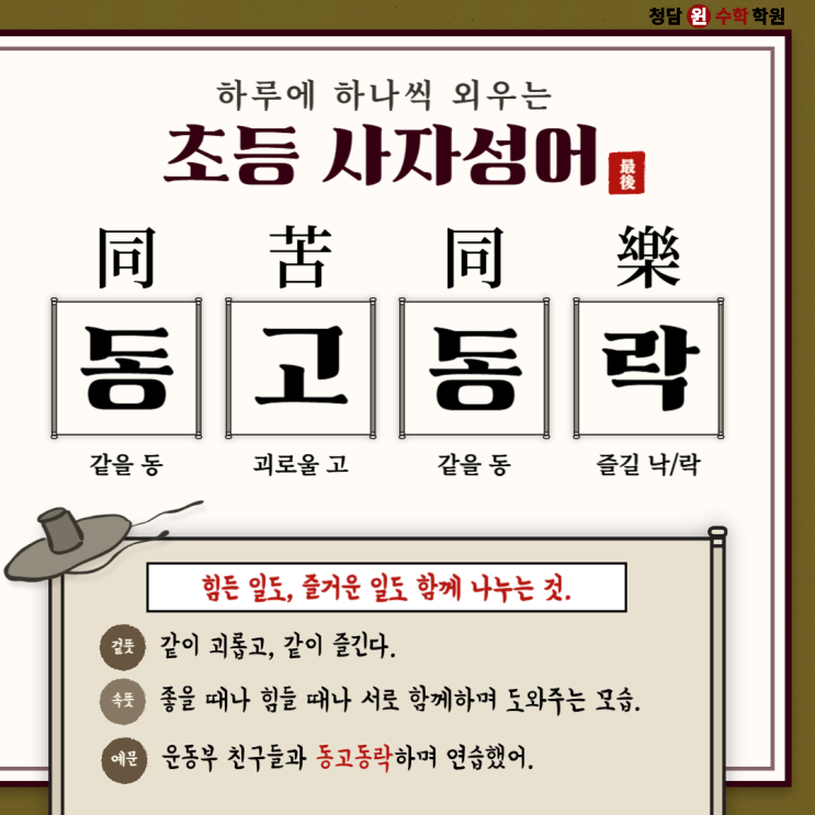 청담윈수학학원 - 하루에 하나씩 외우는 초등 사자성어 '동고동락'