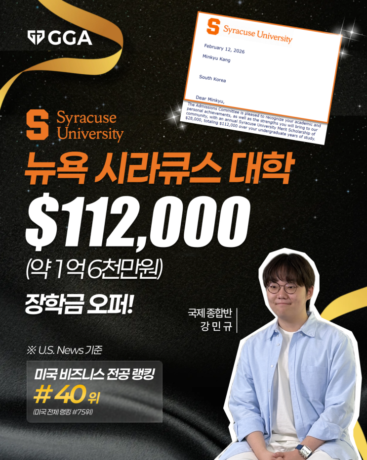 2026 합격 | 젠지 종합반 '1억 6천만원' 시라큐스 대학 장학금 오퍼 받아