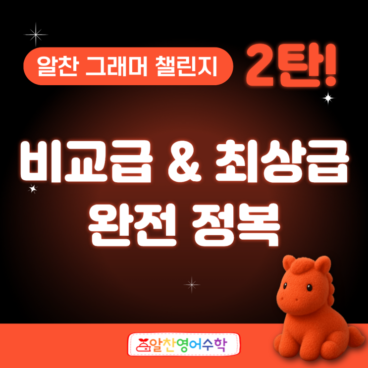 지난 1월, 80여 개의 불규칙 동사 3단 변화를 정복했던 '알찬 그래머 챌린지' 1탄 기억하시나요? ^^ https://blog.naver.com/alchanem/224170000627 정규 수업과 특강만으로도 바쁜 겨울방학이었지만, 우리 알찬이들은 더 탄탄한 기초를 위해 1월과 2월 두 달 동안 추가 챌린지까지! 멋지게 완수했어요!! 오늘은 2월 한 달을 꽉 채웠던 그래머 챌린지 2탄: 형용사·부사의 3단 변화(원급-비교급-최상급) 이야기를 공유드려요~ 설 연휴도 비껴간 알찬이들의 학습 열정 2월은 설 연휴가 길어기에 자칫 학습 흐름이 깨지기 쉬웠어요. 하지만 알찬이들은 챌린지 덕분에 연휴 전후로 쉴 틈 없는 성장을 이뤄냈답니다! Step 1. [설 연휴 전....... <img src="https://blogthumb.pstatic.net/MjAyNjAzMDZfMjE3/MDAxNzcyODAwODc4MTk5.IsZWGLOpNP0xS6PDyYwHaSiqvPATFJWpKIG2uFYpcCcg.x4XNcXigPu5M4jc5pHGK2QN4zDLdEfqRpn1e3jPqw74g.PNG/1.png?type=s3" />