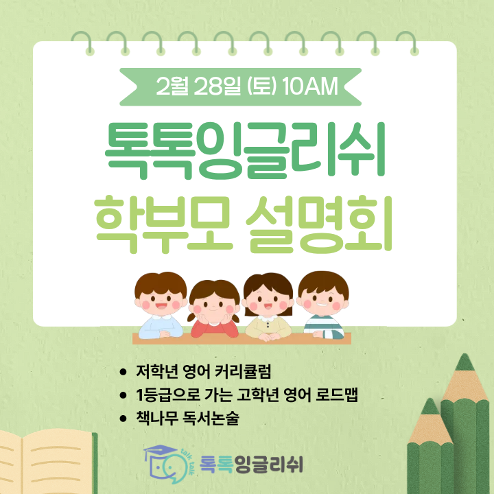 동림동 영어 학원 - 2026년 톡톡잉글리쉬 학부모 설명회 안내