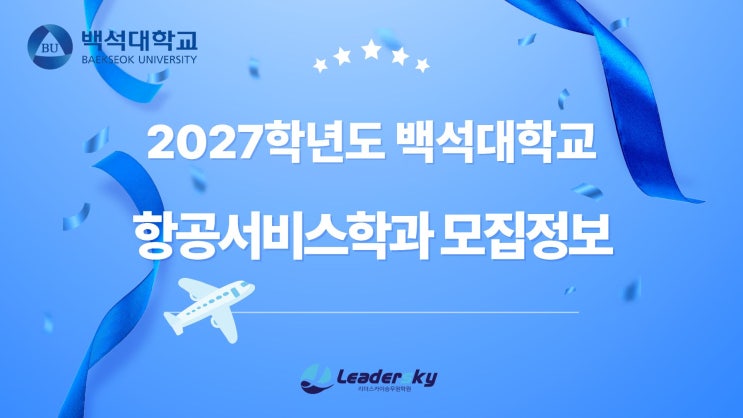 #백석대항공서비스학과 #백석대항공과 #백석대항공서비스과 안녕하세요:) 소수정예승무원학원 리더스카이 승무원멘토입니다. 오늘은 4년제 항공학과 TOP3 중 백석대 항공서비스학과의 2027학년도 입시정보를 공유하겠습니다. 2027학년도 백석대학교 항공서비스학과 입시정보 1. 백석대 항공서비스학과 전형 일정 2027학년도 백석대 항공서비스학과의 수시 원서접수 2026년 9월 7일(월)~11일(금) 면접고사는 2026년 10월15일(목)~17일(토) 정시원서접수는 2027년 1월 4일(월)~7일(목) 정시면접고사는 2027년 1월18일(월) 2. 백석대 항공서비스학과 모집 인원 2027학년도 백석대 항공서비스학과 수시 모집 인원 백석인재 65명, 창의인재 8명, 지역....... <img src="https://blogthumb.pstatic.net/MjAyNjA0MTZfMjk4/MDAxNzc2MzIwOTkzMDg5.z1MHkyWRtzPscRMOsJdP9I30ddMz-vUhG1GdeURuEnAg.57pXKNEovNaNR2cFnOkjtNwjxuKz4JhN3obWJxJHCpMg.JPEG/%B9%E9%BC%AE%B4%EB%C7%D7%B0%F8%BC%AD%BA%F1%BD%BA%C7%D0%B0%FA%C1%A4%BA%B8.jpg?type=s3" />