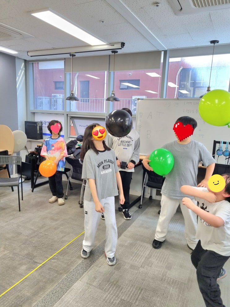 안녕하세요? 1대1 개별 맞춤학습 미래엔영어 옥길버들초점 Hazel입니다 5월은 아이들이 손꼽아 기다리는 달이지요 공휴일도 많고 재량 휴업일까지 이어지다 보니 학습 흐름도 흐트러지지 않도록 해야하고 무엇보다 아이들에게 즐거운 추억도 만들어 주고 싶어 지난 금요일 조금 이른 어린이날 이벤트를 진행했습니다 이번에는 오랜만에 몸을 마음껏 움직이는 활동형 이벤트로 준비했어요 교실은 이미 열기로 가득할 것이 예상되어(?) 시작 전부터 파워 냉방을 가동! 선생님의 철저한 준비 속에 드디어 풍선 게임이 시작되었습니다 팀별 게임, 개인전 게임까지 다양하게 진행된 풍선 미션! 풍선 하나만 있어도 아이들은 이렇게 행복할 수 있구나 싶....... <img src="https://blogthumb.pstatic.net/MjAyNjA0MjhfMTkz/MDAxNzc3MzgwODcwMzI2.bAv7E_fGHw13l70zBIk4zHbEQYfVgOT0rOzKnOMWKb4g.5PyXHOFjDOhYnKqDphxY2Dv6vxpuYo0J7YBMNmtmVCEg.JPEG/20260424_150606.jpg?type=s3" />