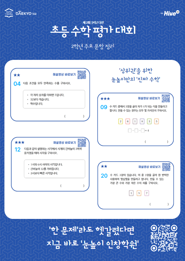 (대교 하이캠퍼스 장자학원)구리다산 초등수학 최강자를 찾아라!-제2회 구리다산 수학평가대회 성황리에 종료