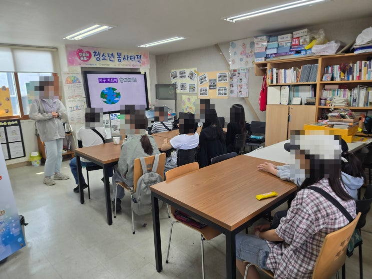 활동목표 : 기후 환경에 관해 알아보기, 환경정화 활동 참여학생 : 김시아,박가은,이다은,김민재,김로운,박세영,안유림,정지우,안시윤,양세율 활동장소 : 청소년마음열기연구소 활동시간 : 10시00분 ~ 12시00분 시험 대비 기간이라 정신없긴 하지만 중등 아이들 요청으로 8시에 나와서 문 열고 시작 9시 45분 연구소로 이동 지우, 유림이는 먼저 걸어가서 노래 들으면서 감상중ㅎ 오늘 주제는 기후 환경 이야기 지구 온난화 원인부터 그로 인해 생기는 여러 문제들까지 같이 이야기해봤다 생각보다 아이들 집중 진짜 잘함 이론 끝나고 바로 환경정화 활동 고고 동네 한 바퀴 쭉 돌면서 담배꽁초랑 쓰레기를 줍고 돌아와서는 기다리던 간식시간^^ ....... <img src="https://blogthumb.pstatic.net/MjAyNjA0MjZfMTA1/MDAxNzc3MTc5NTczMzc2.TIQU2tDeDAVPah5fJv2HSZrFq4Egg8zO82jjFpIKCOwg.ePdd_ZWlxo1MvWAYx8xsyhRcmJbVqH0pVd_sV0chXcUg.JPEG/KakaoTalk_20260425_142138867.jpg?type=s3" />