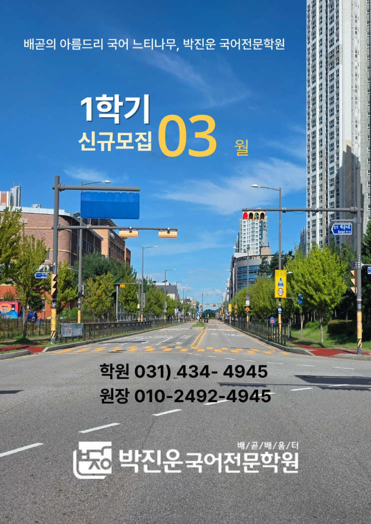 1. 3월 1일(일)부터 시작이지만, 2월 28일(토)부터 등원 가능합니다. 2. 3/1(일), 3/2(월) 정상 수업합니다. 3. 고등부는 3월말부터 내신대비 시작합니다. (3월말 신규 등록 중지) 4. 학년별, 반별 마감 여부는 실시간으로 이 글에 수정 및 반영하므로 참고바랍니다. 5. 박진운 국어전문학원은 과장, 허위 홍보나 광고를 일절 하지 않으며, 모든 글은 원장이 직접 작성합니다. 배곧4로 81-42 신세계프라자 2F, 4F (배곧도서관 맞은편 공영주차장 옆 건물) 고3 수능 문법 심화 과정(특강)-내신대비 포함 ● 수능 문법 심화 과정 특강 (고3) - 원장 직강 - 시간:화요일 오후 7:30~10:00 (주1회) - 대상: 고3 봄학기 특강 - 내용: 문법 전 범위 심화....... <img src="https://blogthumb.pstatic.net/MjAyNjAyMjFfMTM4/MDAxNzcxNjQzMTIwODI2.jy3B6USvi-DvKU86Xsl5vMYgVr_cItTkHLCapEdiZBQg.ydnR1bbuymnKuCQJfV-64F5JhW8XJbbkbuYHSCE1jkIg.PNG/3%BF%F9%C7%D0%B1%E2.png?type=s3" />