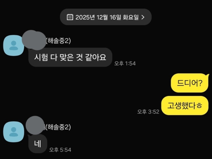 2025년 기말 시험이 끝났습니다 기말시험성적 만족하시나요? 4~6주간 학생들과 열심히 힘들게 시험대비했습니다 다행히 열심히 대비한 결과 원하는 점수를 받은 학생들이 많았습니다! 배곧중1 라라중1 서해중1 함현중1 라라중2 서해중2 모든 학생들 수고많았습니다~ 특히 배곧중1학생들은 서술형까지 완벽하게 썼는데 기준을 못맞춰 7점이나 깎인 학생들이 많아 너무 아쉬웠지만 그래도 준비한만큼 좋은 점수가 나왔습니다 <img src="https://blogthumb.pstatic.net/MjAyNTEyMTdfMjg4/MDAxNzY1OTc1NzkyODIz.InV0s4cMW245N3lgTHckT7x4IZSPpsrdkWtBdxre0RQg.I0AKQSnDq4TT4jJgfnIvzZBs47Bk4WZ4AJ3BQlpHb9Ag.JPEG/900%A3%DF1765975684422.jpg?type=s3" />