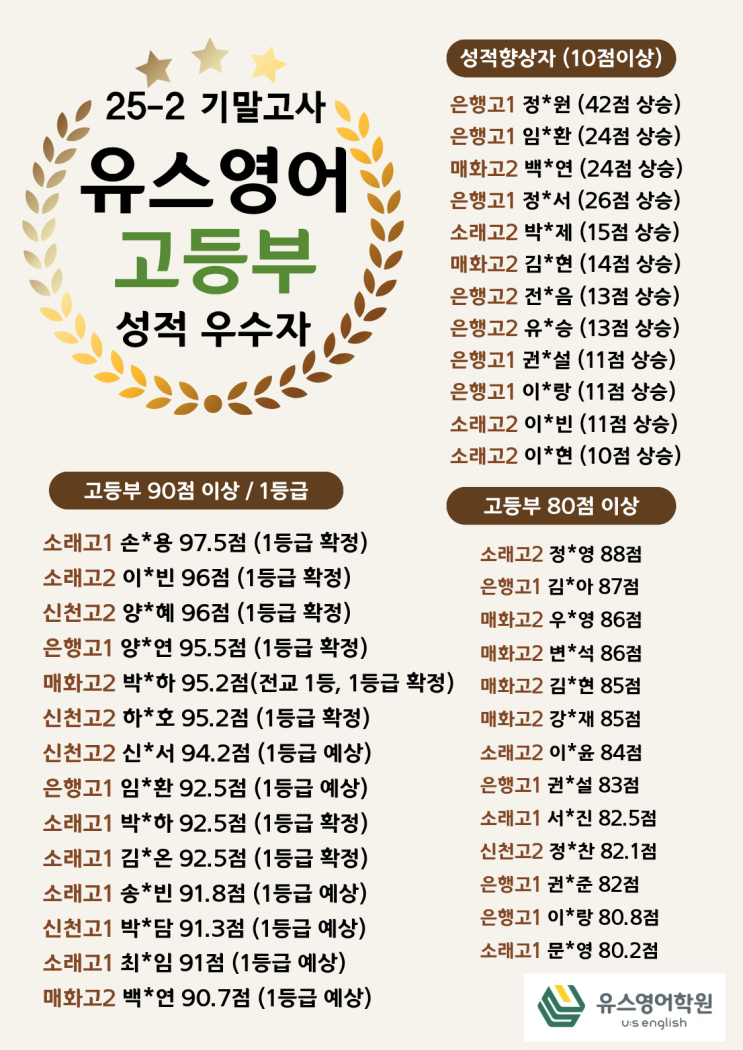 [유스영어] 25-2 기말고사 성적우수자 중등부/고등부