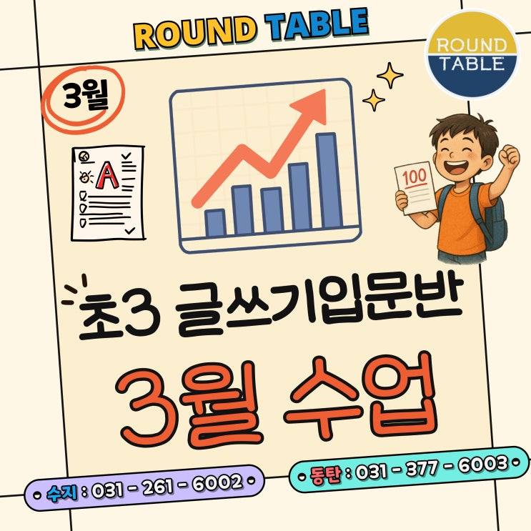 ✔️ 수지동탄 - 신개념 토론 글쓰기 독해력 수업 (풍덕천동 - 서초빌딩 3층) ⭐️ 라운드테이블채재준국어학원 - 초3 글쓰기입문반 3월 수업 ⭐️ - 3월 수업 → 3월 4일(수), 3월 6일(금), 7일(토) 시작 - ⚠️ 중•고교 수행평가, ’과제형‘ 전면 폐지 - 수업 중 완료 원칙으로 교육부 발표 ➡️ 이번 개편으로 암기식 문답 대신 수업 시간 중 주제에 대한 조별 토론️과 자유로운 발상을 통한 논리적 글쓰기 활동 ✍ ➡️ 수업 시간에 제공된 자료를 분석하고 탐구 결과를 정리하는 활동 중심으로 변화 ⚠️ 경기도 교육청 발표 - 다름과 공존하는 ’경기초등토론교육‘ ⭐️⭐️⭐️ 라운드테이블 초3글쓰기입문반 ⭐️....... <img src="https://blogthumb.pstatic.net/MjAyNjAyMjVfMjE1/MDAxNzcxOTkyODc2MzI0.Ywg8VulVmp5K4Z--hGhB8PJTRirL0FMk4VlYpGY-d1kg.G_Zmbt-9J2Hk2fsOjBYL14tnDMDcTlvEvgOpKMvgGkgg.JPEG/001.jpg?type=s3" />