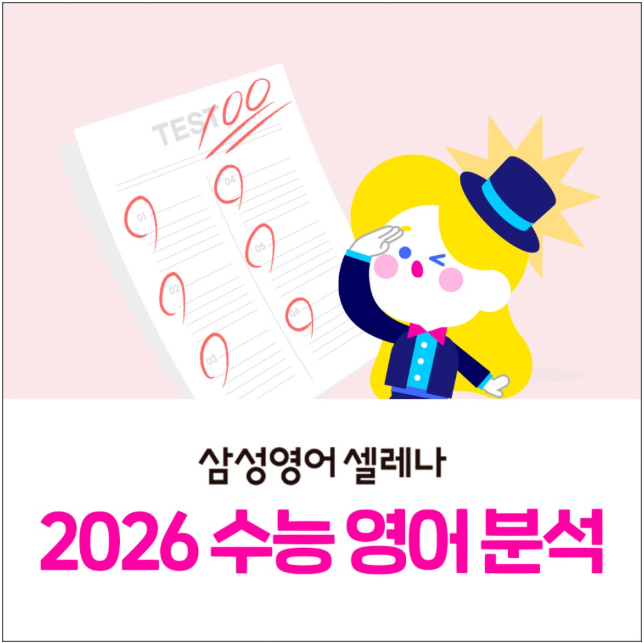 [출처] 2026 수능 vs 삼성영어셀레나 연계 분석|작성자 삼성영어셀레나 안녕하세요. 용인 동천동 영어학원 초등 중등 고등 영어 전문 삼성영어셀레나 인뎁스교실입니다. 지난 11월 13일, 2026학년도 대학수학능력시험이 진행되었어요. 수험생 여러분들 모두 고생 많으셨고, 모두 노력한 만큼 좋은 결과 얻으시길 바라요! 오늘은 2026 수능 영어의 출제 경향을 살펴보고, 삼성영어셀레나 교재와 어떻게 연계되어 있는지 살펴보려고 해요. ✅ 1등급 비율 3.11%로, 절대 평가 도입 이후 최고난도 ✅ 문항의 질을 통한 변별력 확보 ✅ 빈칸 추론, 간접 쓰기 문항 체감 난도 ↑ 삼성영어셀레나는 500개의 청크로 300만개의 문장을 만드는....... <img src="https://blogthumb.pstatic.net/MjAyNTEyMjJfMTM3/MDAxNzY2MzgxNTkxNjI2.-HfU9UkjGz88liWx96s48kBTYCGyj8Bsl1pfZFzUxB0g.2bnRSX9jPlRfZXeph3gGtHlUrfMdOOTQ-jRl9u8OFT4g.PNG/image.png?type=s3" />