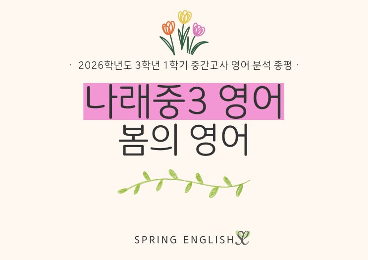 안녕하세요:) 봄의영어학원입니다. 중학생들까지 모든 시험이 끝났습니다. 다들 고생 많으셨어요! 저희 봄의영어학원의 나래중3 친구들은 모두 100점이라는 좋은 성과를 냈습니다★ 조금 평이한 시험 난이도였지만 기말고사 대비 전까지 기본기를 잘 다져서 앞으로 어려운 시험에서도 좋은 결과를 낼 수 있기를 응원하겠습니다! 봄의영어학원에서 직접 분석한 2026 나래중3 중간고사 영어 총평! 같이 보시고 도움 되시길 바랍니다:) 교육 상담 및 레벨테스트는 예약제입니다. 미리 전화 또는 문자 남겨주시면 일정 조율 후 상담 도와드리겠습니다. 감사합니다♥ 010 5775 0299 #김포영어학원 #마산동영어학원 #김포중등영어 #김포초등영어 #김포....... <img src="https://blogthumb.pstatic.net/MjAyNjA0MjZfNjIg/MDAxNzc3MjE1MjU2MDc2.3fqWh1bJoeYMYHwwRiUjiIoEsnxVV8fX1w_7cBE0dP8g.7CTgXxkRj4pxpKdPloPntz-w1qmZvKbWCoCQ-zdkmhkg.JPEG/001.jpg?type=s3" />