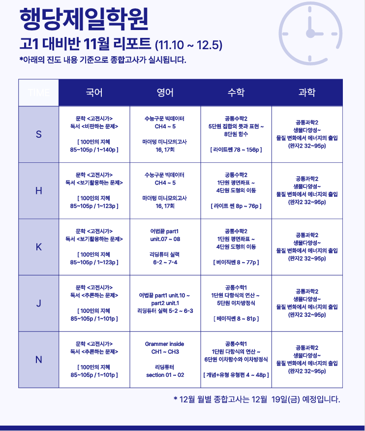 중3 '고1 대비반' 11월 리포트