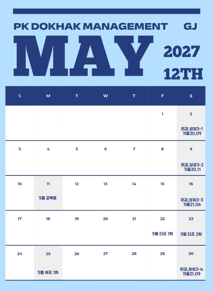 [광진구 독학재수학원] 2027학년도 5월 모의고사 일정 / 피케이 PK독학재수학원 광진본원점
