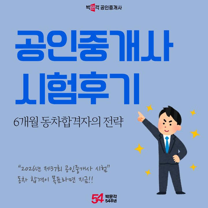 안녕하세요. 도전으로 내일을 힘차게 열어갑니다! 벌써 4월도 중순을 넘어 5월을 향해갑니다. 조금은 이르게 더워져 앞으로 시험공부 하시면서 더욱 체력관리를 철저히 하셔야 할 텐데요, 10/31(토)로 예정된 2026년 제37회 공인중개사 시험까지 지치지 않고 자신의 페이스를 지켜가셔야 합니다. 1차 시험 부동산학개론, 부동산민법 2차 시험 공인중개사법, 부동산공법 부동산공시법령 및 부동산세법 1차 2차 시험으로 진행되는 공인중개사! 이제 시험일까지 190일 정도가 남은 시기 6개월 남짓의 시간을 활용해 공인중개사 1차 2차 시험을 동차로 준비하실 수 있을지 고민하시는 분들이 있을 텐데요, 비슷한 기간을 활용해 동차 합격의 기쁨을 맛....... <img src="https://blogthumb.pstatic.net/MjAyNjA0MjBfMTM2/MDAxNzc2NjcxMDM0NjQw.Nr7pr5LjxshhWqIY29WhKylFXVmkwI8sT2YD1Zp9Vysg.PUNV35gn-eiXtLR-uT0n9HsgJTLEgBkdksqBRvrXoZUg.PNG/182.png?type=s3" />