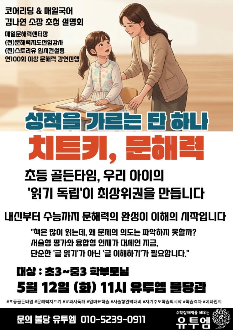 불당동 초등 문해력, “책은 읽는데 왜 성적이 안 오를까요?”