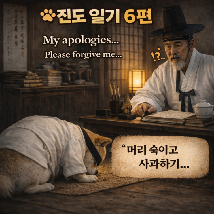 Day 6 – 코박은 날 나, 서당개진도... 도망가다 넘어지고 훈장님 앞에 잡혀서 앉았다.. 아니 앉은 게 아니라 코박고 엎드렸다... ♂️ 조용히 말했다... “My apologies…” “Please forgive me…” 훈장님은 나를 보셨다... 한숨을 쉬셨다... …그리고 말씀하셨다 “조심 좀 하거라” 휴...살았다 진지하게 용서를 구할때는 My apologies...Please forgive me...가 최고다... #Myapologies뜻 #pleaseforgiveme뜻 #myapologies #pleaseforgiveme #please #forgive #me #용서해줘영어로 #미안해 #미안해영어로 #잘못했어요 #잘못했어요영어로 #영어 #일기 #서당개진도 <img src="https://blogthumb.pstatic.net/MjAyNjA0MjBfOSAg/MDAxNzc2Njc4NjAzOTk1.hyEZPtAZSnBv98y1WgKxLe6_WBff-vyDaJR78HkESU4g.qdrlD92whAZi6smF8Jbl5_JUEL52Xxyws9Kb9MmYLl4g.PNG/900_file_00000000faf472069f2ebf8787e5365e.png?type=s3" />