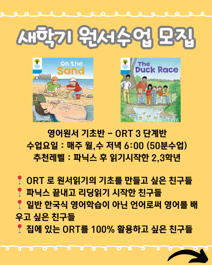 안녕하세요. 잉글리쉬위캔 줌 원서클라스입니다 새학기 우리 아이 영어학습 어떻게 하실지 고민이신가요? 저희수업은 한국식 영어학습이 아닌 실제 영어권 아이들이 읽는 동화책, 아동문학, 소설등의 책으로 영어를 학습이 아닌 언어로 수업하고 있습니다. 수업은 4명 정예 소수정예 클래스로, 아이 한 명 한 명에게 충분한 피드백을 제공하고 있어 기존 수업은 자리 오픈이 드문 편입니다. 하지만 이번 새 학기를 대비해 새로운 반이 개설되고, 기존 반에서 레벨 이동이 이루어지면서 신규 수강생을 모집하게 되었습니다 수업은 무학년제로 진행되지만, 학년에 따라 이해도와 학습 습득력에 차이가 있어 두 학년 범위로 나누어 모집합....... <img src="https://blogthumb.pstatic.net/MjAyNjAyMDlfMjU5/MDAxNzcwNTg4MDQ3MjQy.QNXyX0-zT64XGzSKoCsGPZMSR8g6yMjgLJCKpS_ezbMg.ONFtsTwA2ZqcuX2N4qJXPy4eWVTZkGJbDm_ZzpaYVI8g.PNG/1.png?type=s3" />